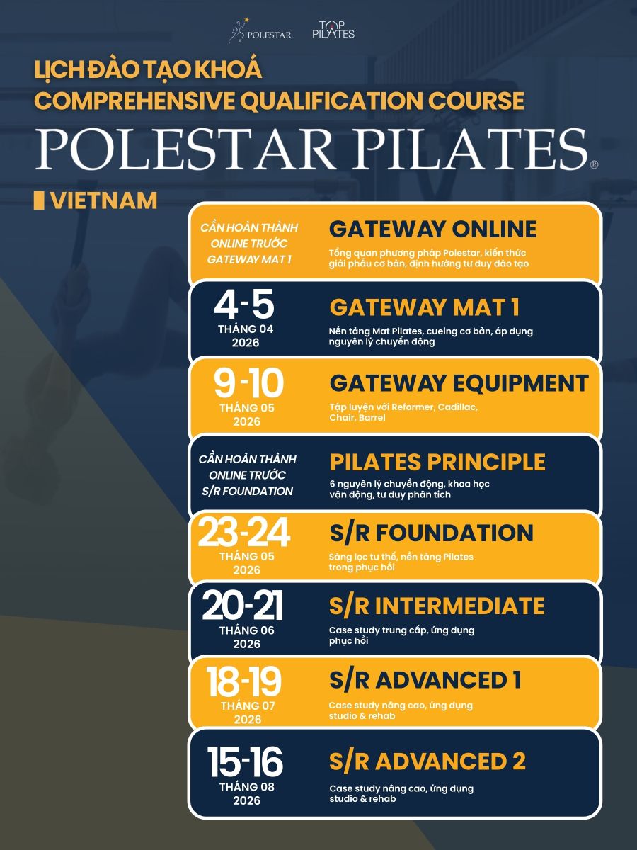 Thông tin chi tiết về chương trình và đăng ký khóa học vui lòng xem tại: https://www.polestarpilatesasia.com/en/polestar-pilates-comprehensive-qualification-course-studio-rehab-top-pilates-apr-aug-2026/